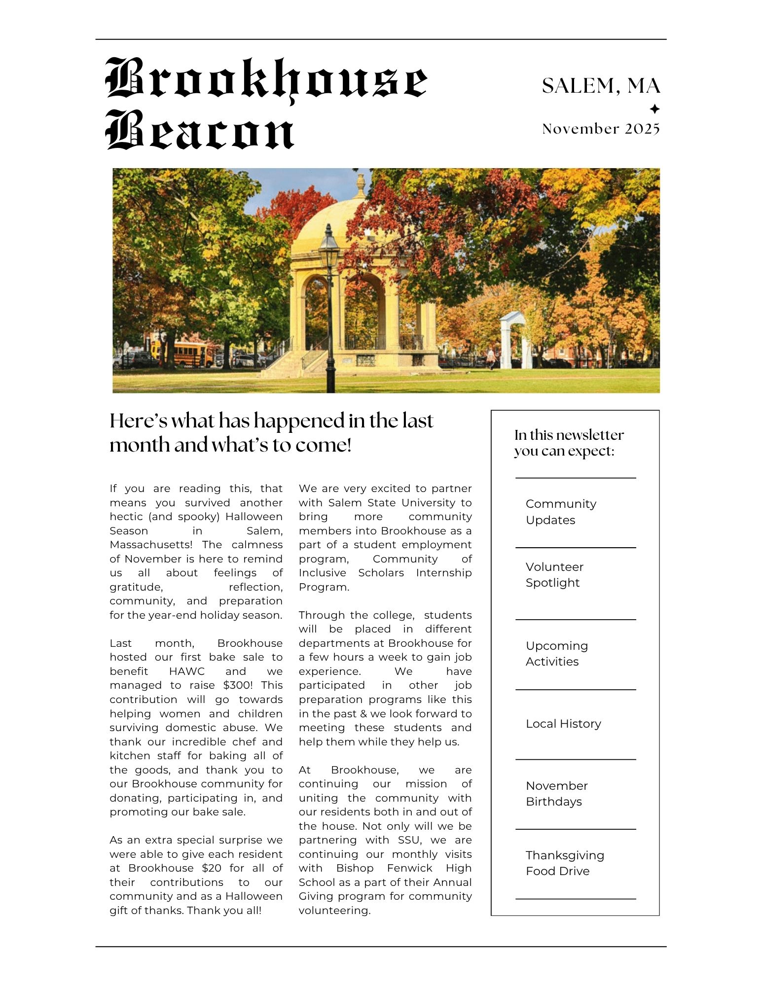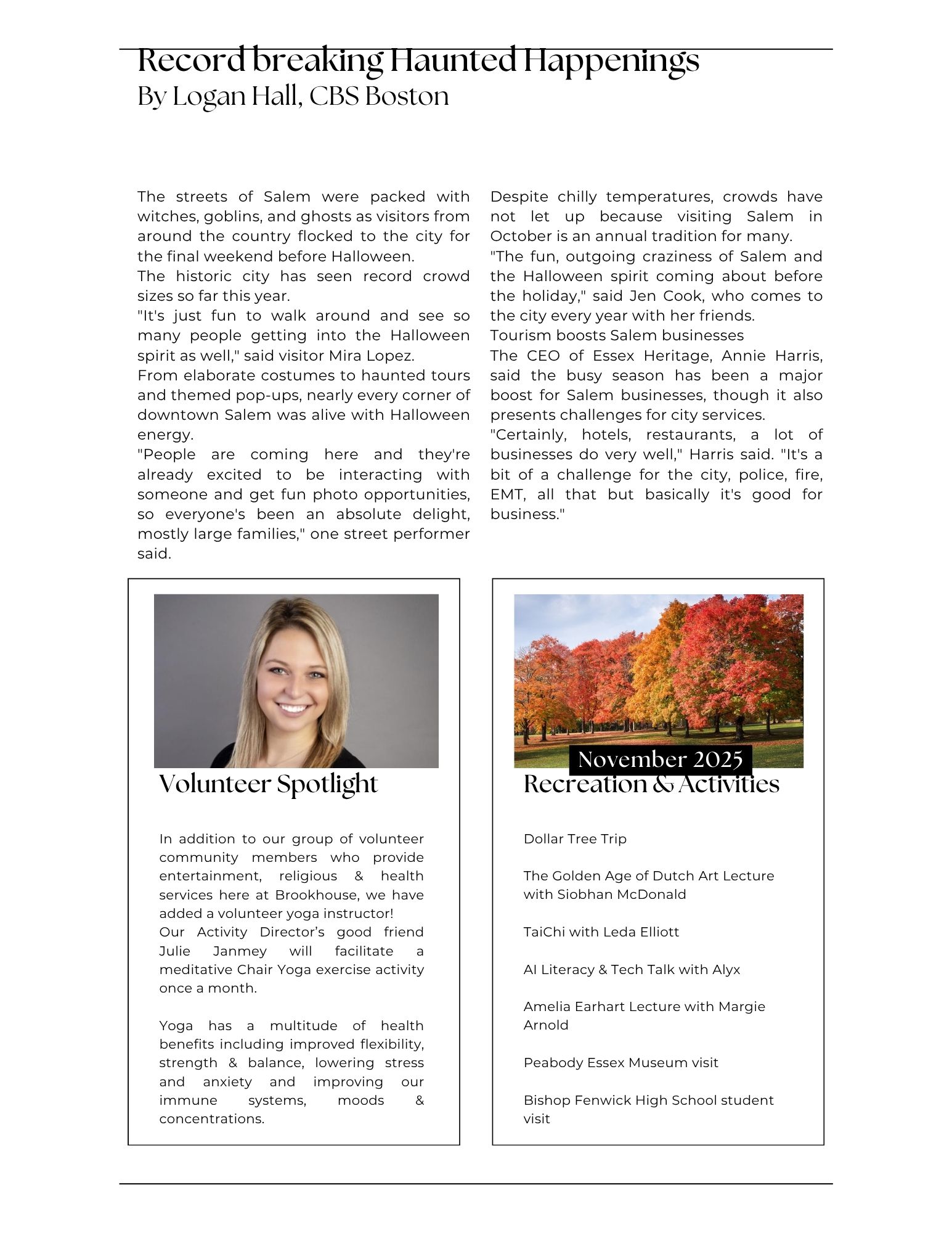 Nov42025Senior Life Category: Senior LifeBy Laurie FullertonNovember 4, 2025 Author: Laurie Fullerton Related PostsFall activities bring people togetherOctober 15, 2025Brookhouse Beacon October EditionOctober 1, 2025September Brings ‘Autumn Days of Cheer’September 2, 2025September is Healthy Aging MonthAugust 27, 2025August Is A Time to Enjoy These Waning Summer DaysAugust 3, 2025Summer Is for Seniors TooJuly 9, 2025
